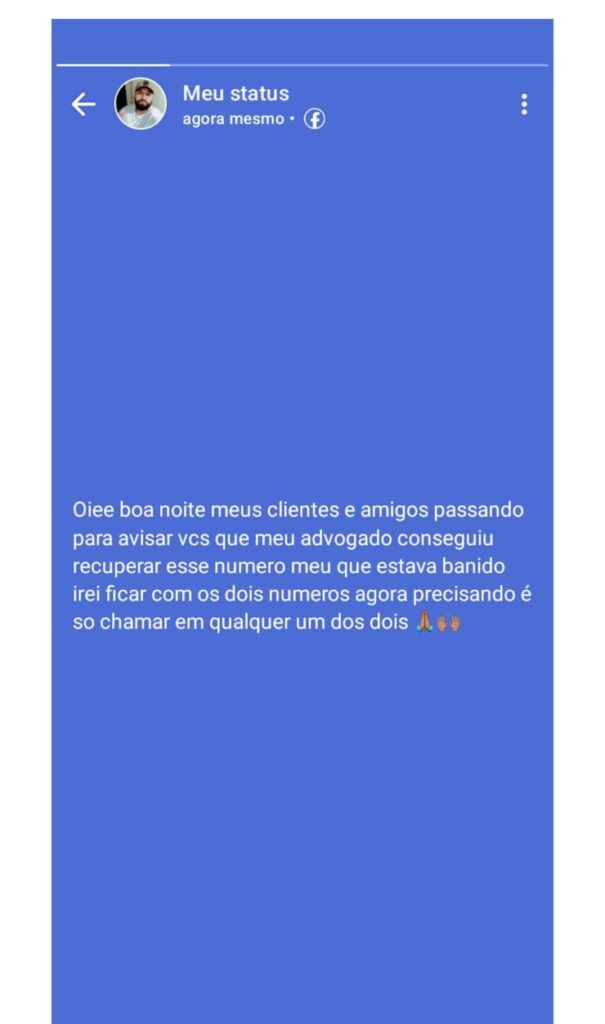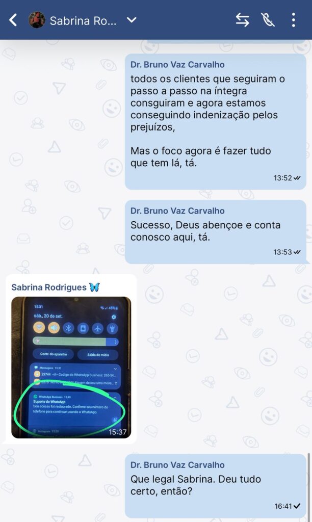 Isso pode servir tanto para tentar reverter o bloqueio junto ao WhatsApp quanto para entrar com uma ação judicial e buscar indenizações pelos prejuízos causados.