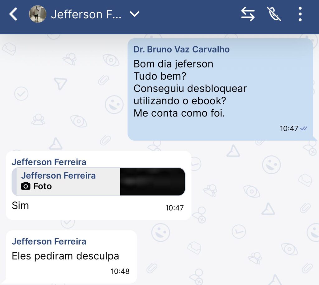 “Dr. Bruno, meu WhatsApp já foi bloqueado há muito tempo! Esse ebook ainda pode me ajudar?”